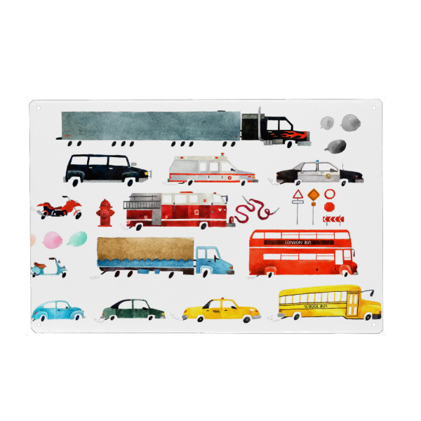 Metall Poster "Cars and Lorries" artboxONE - Für Kinder,Automobile - Autos,Malerei,Cars,Lorries,Bunt,Colorful,Wagen,Fahrzeuge,Kinder,Nursery,Children