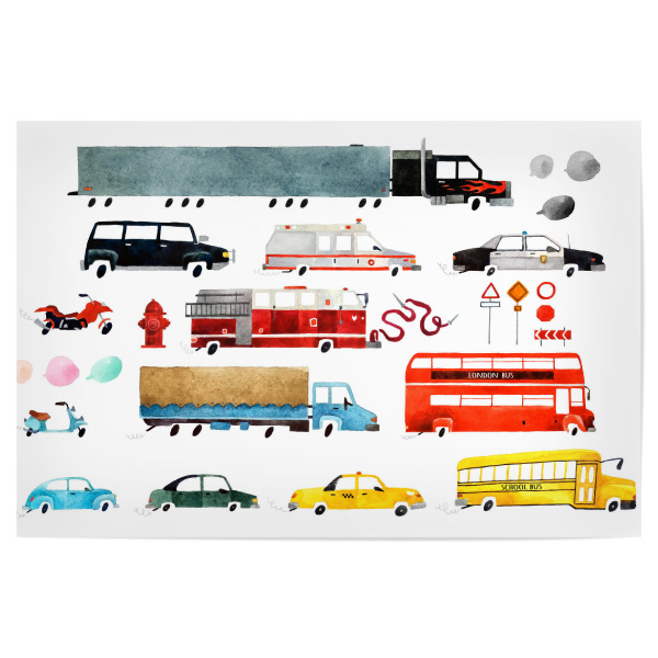 Poster "Cars and Lorries" artboxONE - Für Kinder,Automobile - Autos,Malerei,Cars,Lorries,Bunt,Colorful,Wagen,Fahrzeuge,Kinder,Nursery,Children