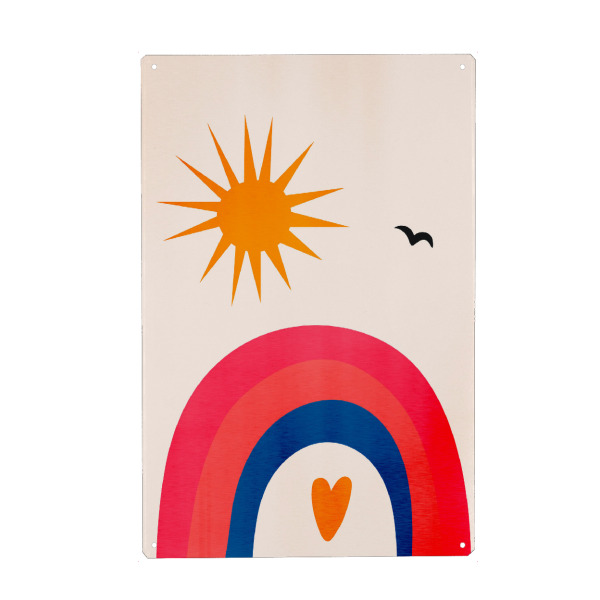 Holzbild "Happy Days" artboxONE - Für Kinder,Abstrakt - Regenbogen,Vogel,Farbenfroh,Rainbow,Bunt,Colorful,Kinder,Nursery,Bird,Sun,Sonne,Fröhlich,Happy