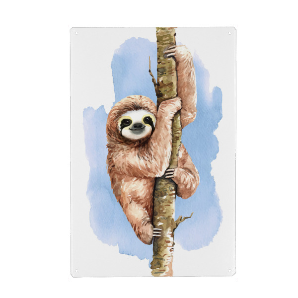 Holzbild "Faultier am Stamm" artboxONE - Für Kinder,Tiere - Faultier,Baum,Klettern,Aquarell,Süß,Tier,Animal,Kinder,Nursery,Tree,Bunt,Colorful,Sloth