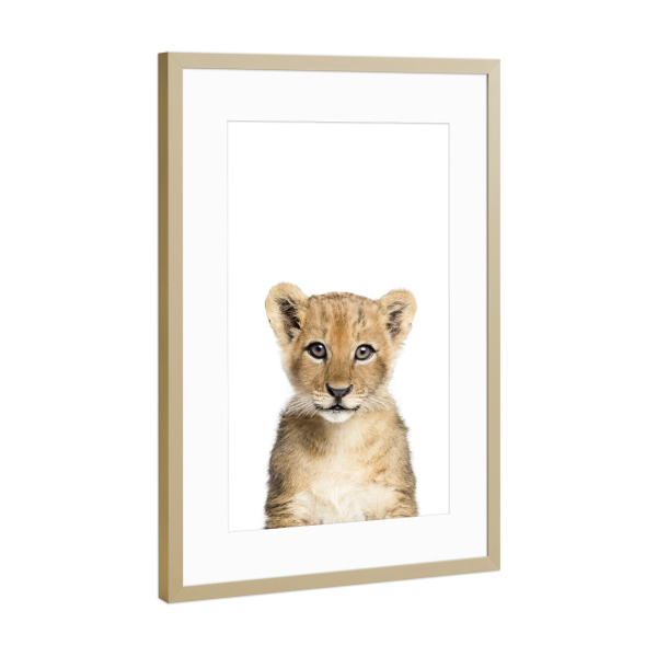 Poster mit Rahmen Gold "Baby Lion Cub" artboxONE - Für Kinder,Tiere - Lion,Lion cub,Baby,Animals,Safari,Zoo,Photography,Animal art,Nursery decor