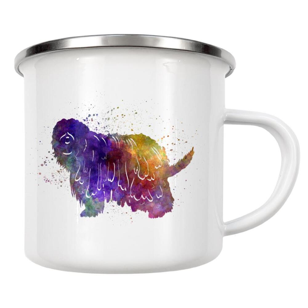 Emaille Tasse "Bergamasco Shepherd in watercolor" artboxONE - Tiere - Dog,Pet,Childish,Watercolor,Decorative,Nursery decor,Animal,Animals,Dogs