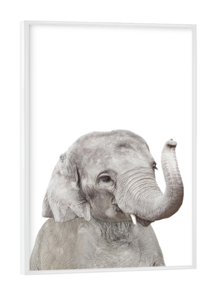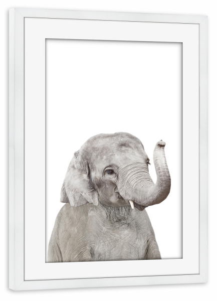 Poster mit Rahmen weiß "Cute Elephant" artboxONE - Für Kinder,Tiere - Elephant,Animals,Safari,Nursery decor,Elephant trunk,Animal portrait