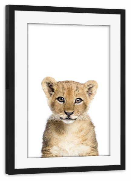 Poster mit Rahmen schwarz "Baby Lion Cub" artboxONE - Für Kinder,Tiere - Lion,Lion cub,Baby,Animals,Safari,Zoo,Photography,Animal art,Nursery decor