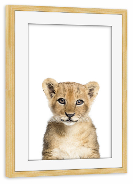 Poster mit Rahmen kiefer "Baby Lion Cub" artboxONE - Für Kinder,Tiere - Lion,Lion cub,Baby,Animals,Safari,Zoo,Photography,Animal art,Nursery decor