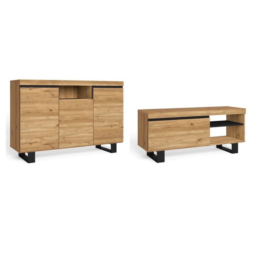 SKRAUT HOME Natural Dining Room Set, Beistellmöbel, TV-Schrank 120cm Nordic Black Oak _ SETNAT120TALL