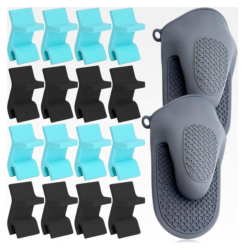 16 Stück Backblech-Stapler und 2 Ofenhandschuhe, wiederverwendbare, platzsparende Stapelhalter für Bleche und Silikon-Kochhandschuhe, für Gefrie...