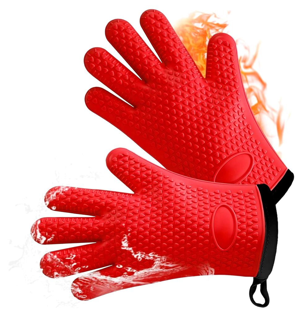 Paar Ofenhandschuhe aus Silikon, verbrühungssicher, hitzebeständig bis 230 °C, Fünf-Finger-Ofenhandschuhe, Kochzubehör