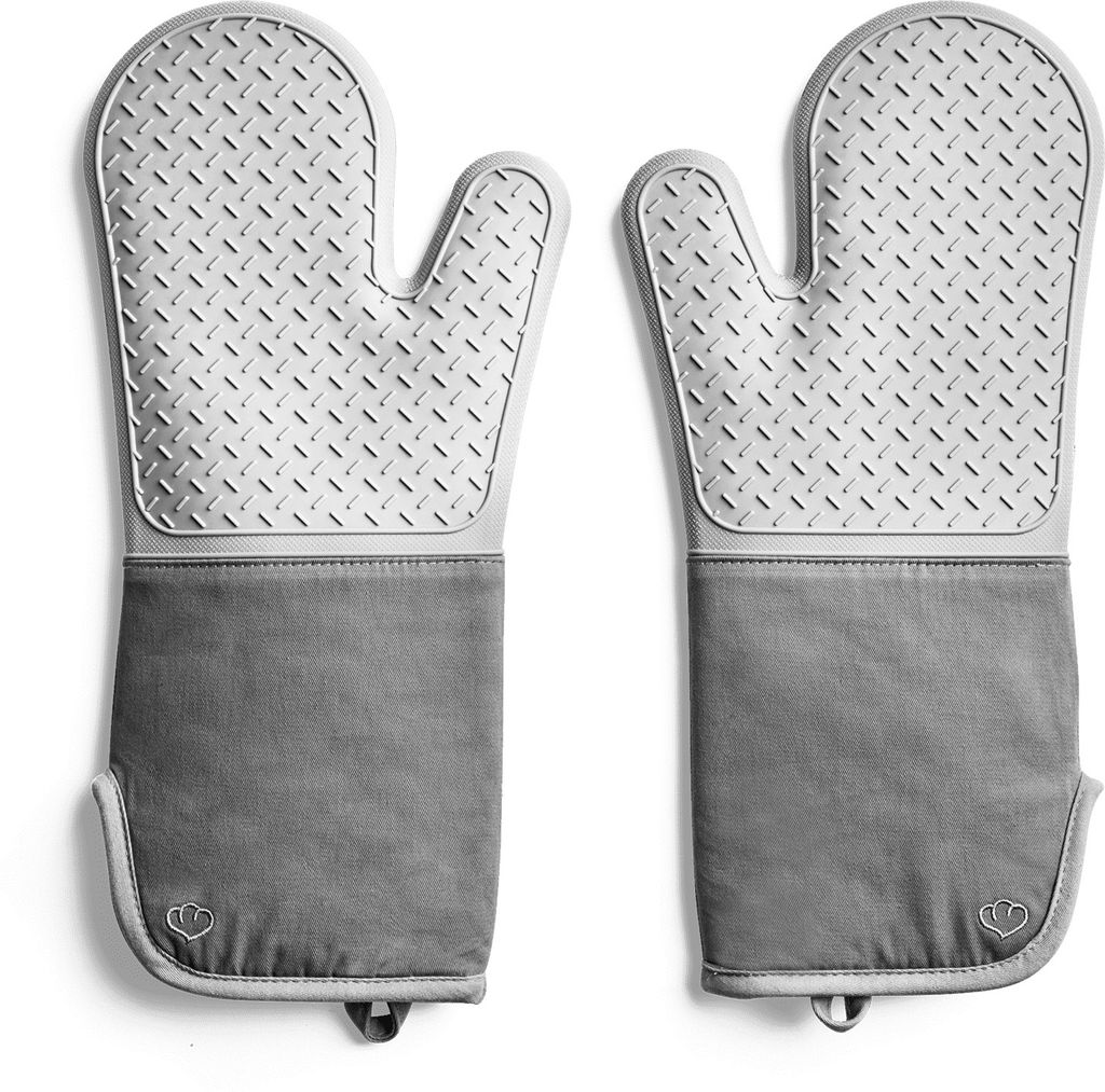 INF Silikon-Ofenhandschuhe: Hitzebeständige Mikrowellenhandschuhe zum Backen (1 Paar) Grau