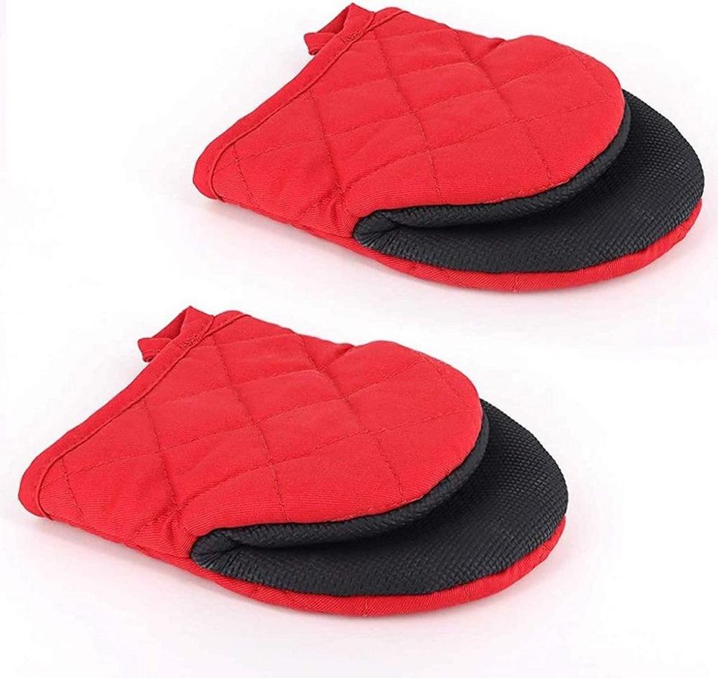 Paar kurze Ofenhandschuhe, hitzebeständige Mini-Ofenhandschuhe aus Silikon für die Küche bis 500 Grad, rutschfeste Griffflächen
