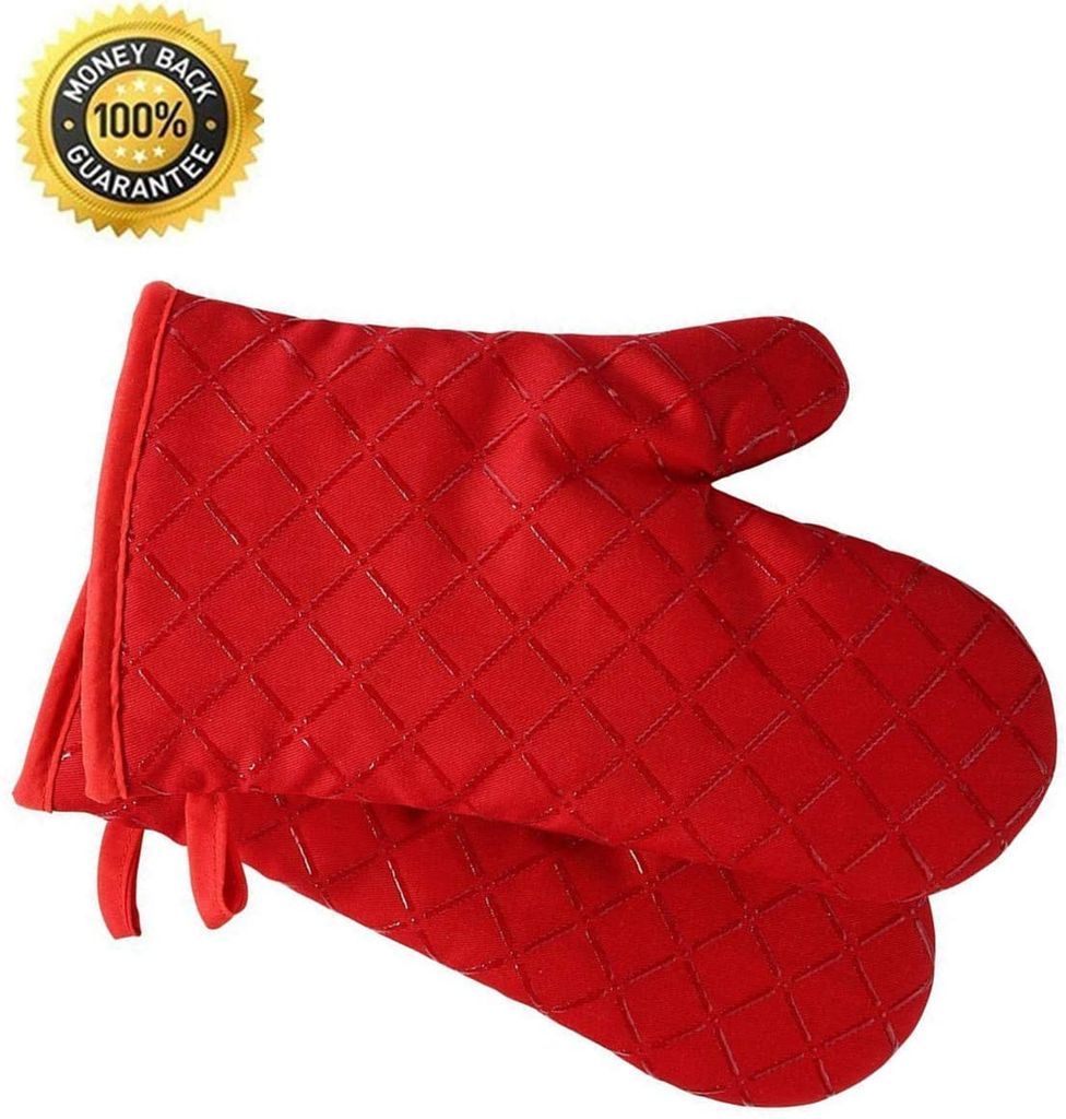 Hitzebeständige Ofenhandschuhe aus Silikon mit Baumwollfutter, Backofenhandschuhe für Temperaturen bis 300 °C, zum Backen, Kochen, Grillen