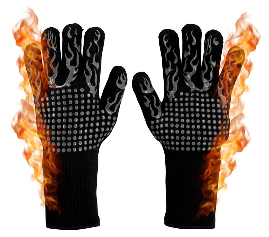 Hitzebeständige Grillhandschuhe bis 800°C – Rutschfeste Silikon BBQ Handschuhe mit langer Stulpe – Ofenhandschuhe für Grillen, Backofen, Koc...