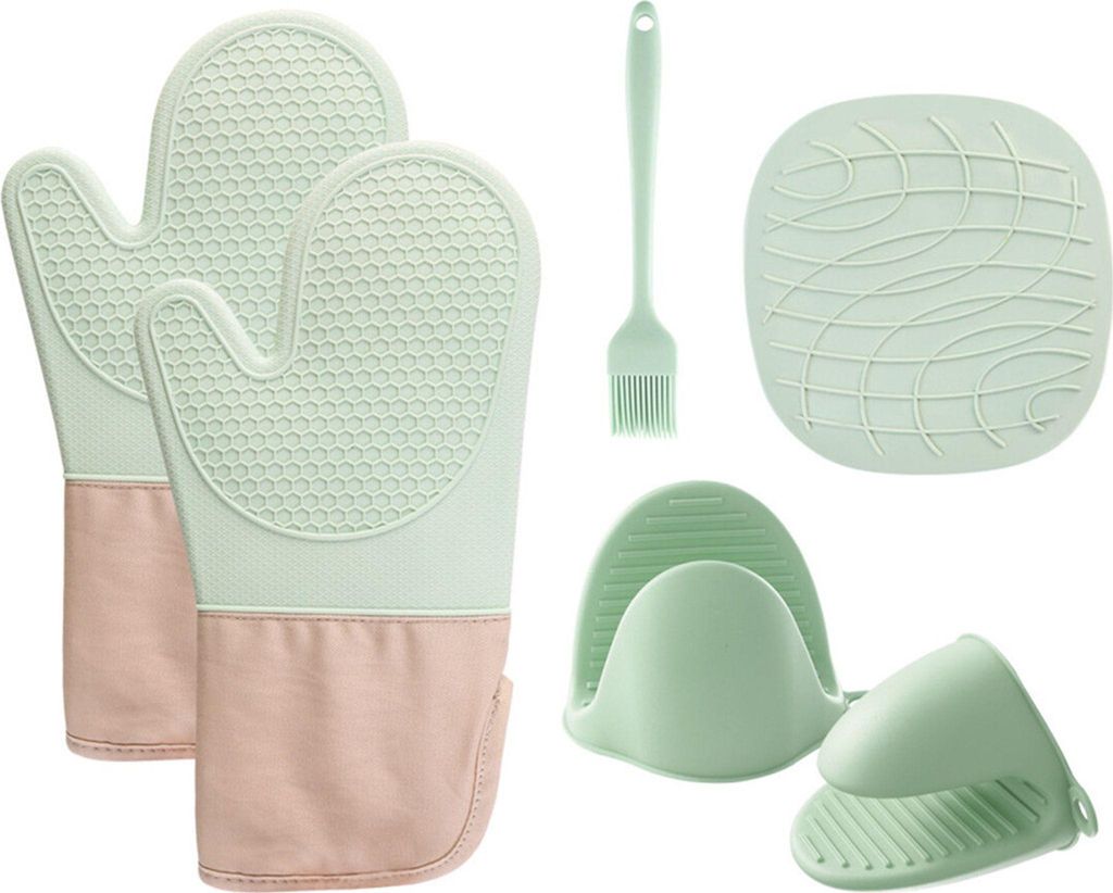 Ofenhandschuh + Silikon Topflappen Handschuhe + Silikon Topflappen, Hitzebeständige rutschfeste Backhandschuhe, Zum Kochen und Backen, 6 Stück Set