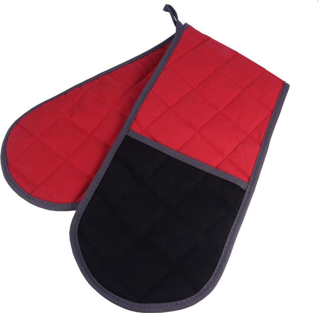 Lange Silikon-Ofenhandschuhe, rutschfeste Topfhandschuhe für Kochen, Grillen und Backen (Rot)