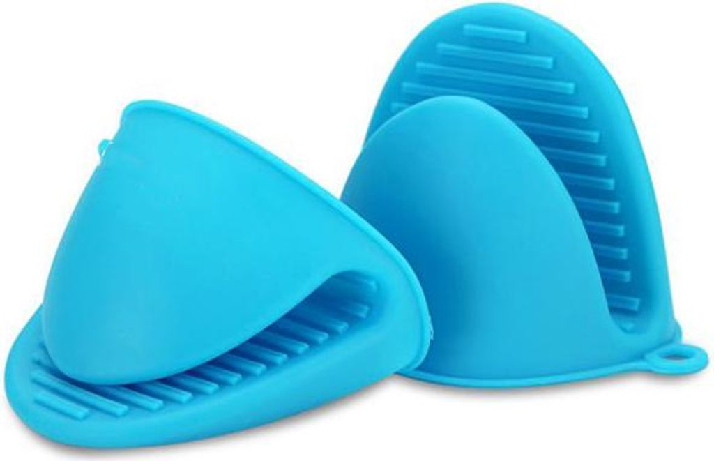 2er-Pack Mini-Ofenhandschuhe aus hitzebeständigem Silikon, Kochhandschuhe, Topflappen zum Kochen und Backen in der Küche, Blau