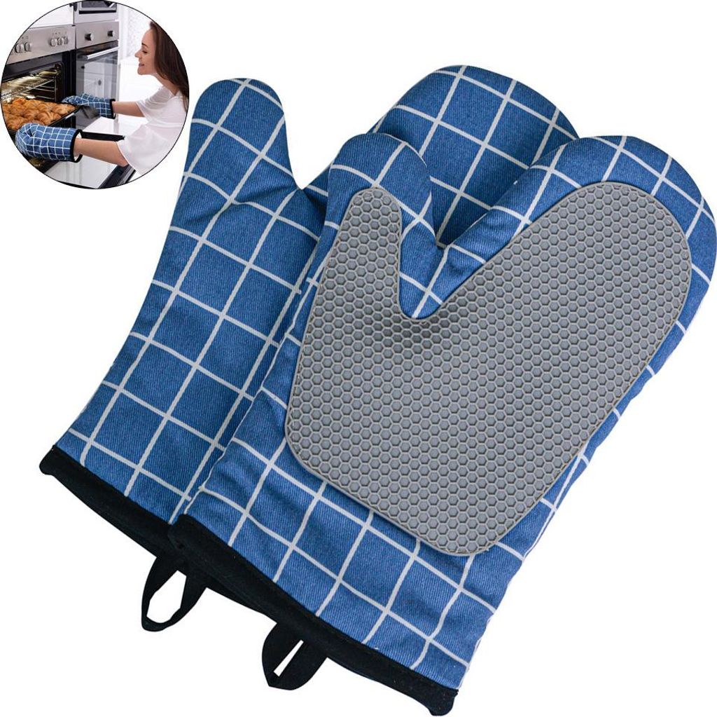 Ofenhandschuhe, hitzeisolierendes Silikon mit rutschfestem Gitter, zum Kochen/Backen/Grillen