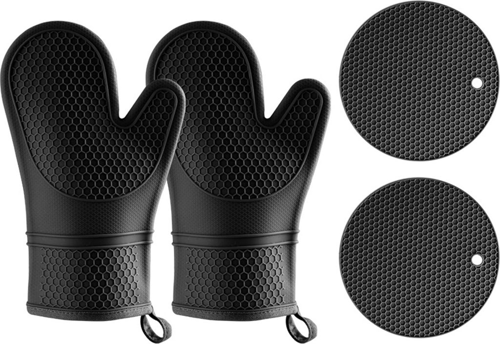 4-teilige Silikon-Ofenhandschuhe, hitzebeständige Küchenhandschuhe, Quetschhandschuhe, Topflappen aus Silikon gegen Verbrühungen, rutschfeste Ko...