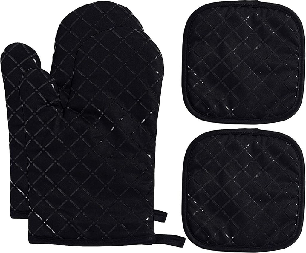 4stk Ofenhandschuhe Topflappen Set 300°C Silikon Kochhandschuhe Topfhandschuhe Hitzebeständige Backhandschuhe, Schwarz