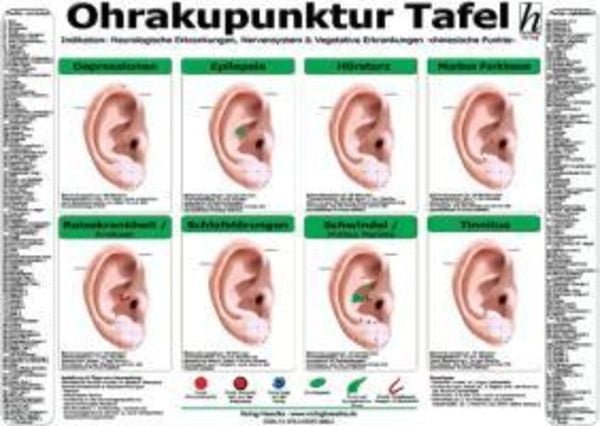 Ohrakupunktur Tafel - Indikation: Neurologische Erkrankungen, Nervensystem & Vegetative Erkrankungen