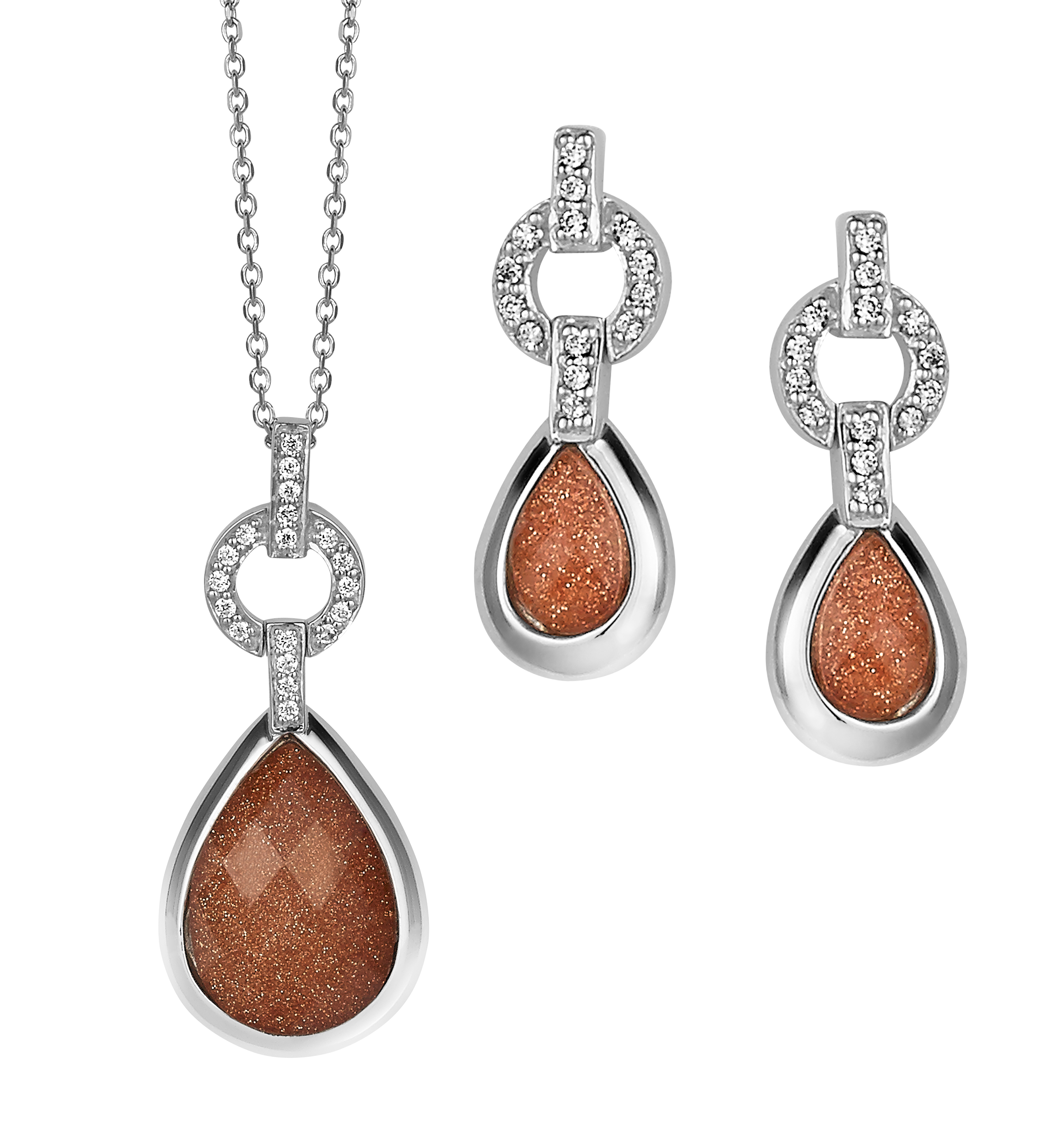 Orphelia 'Onyx' Damen 925 Sterling Silber Set: Kettenanhänger + Ohrringe - Rosé SET-7127/RG
