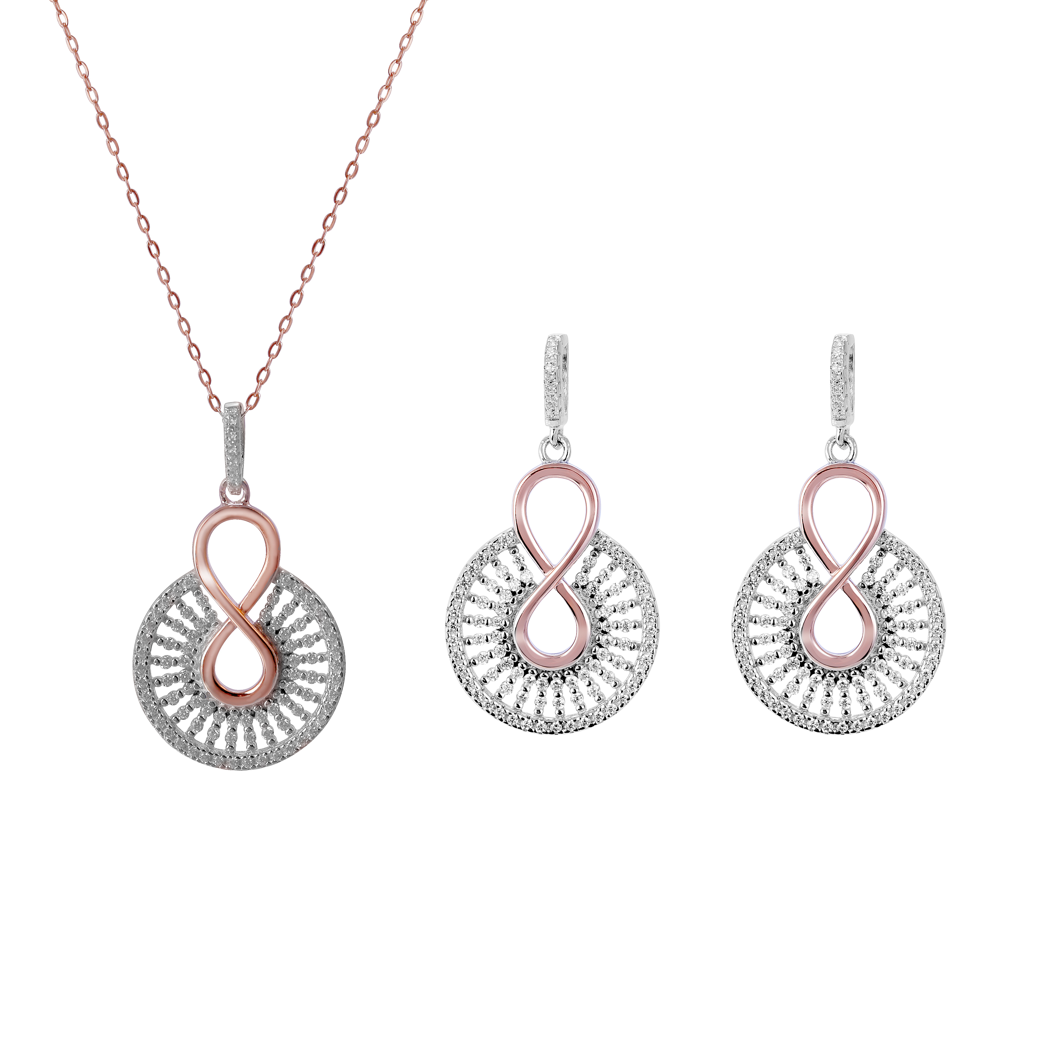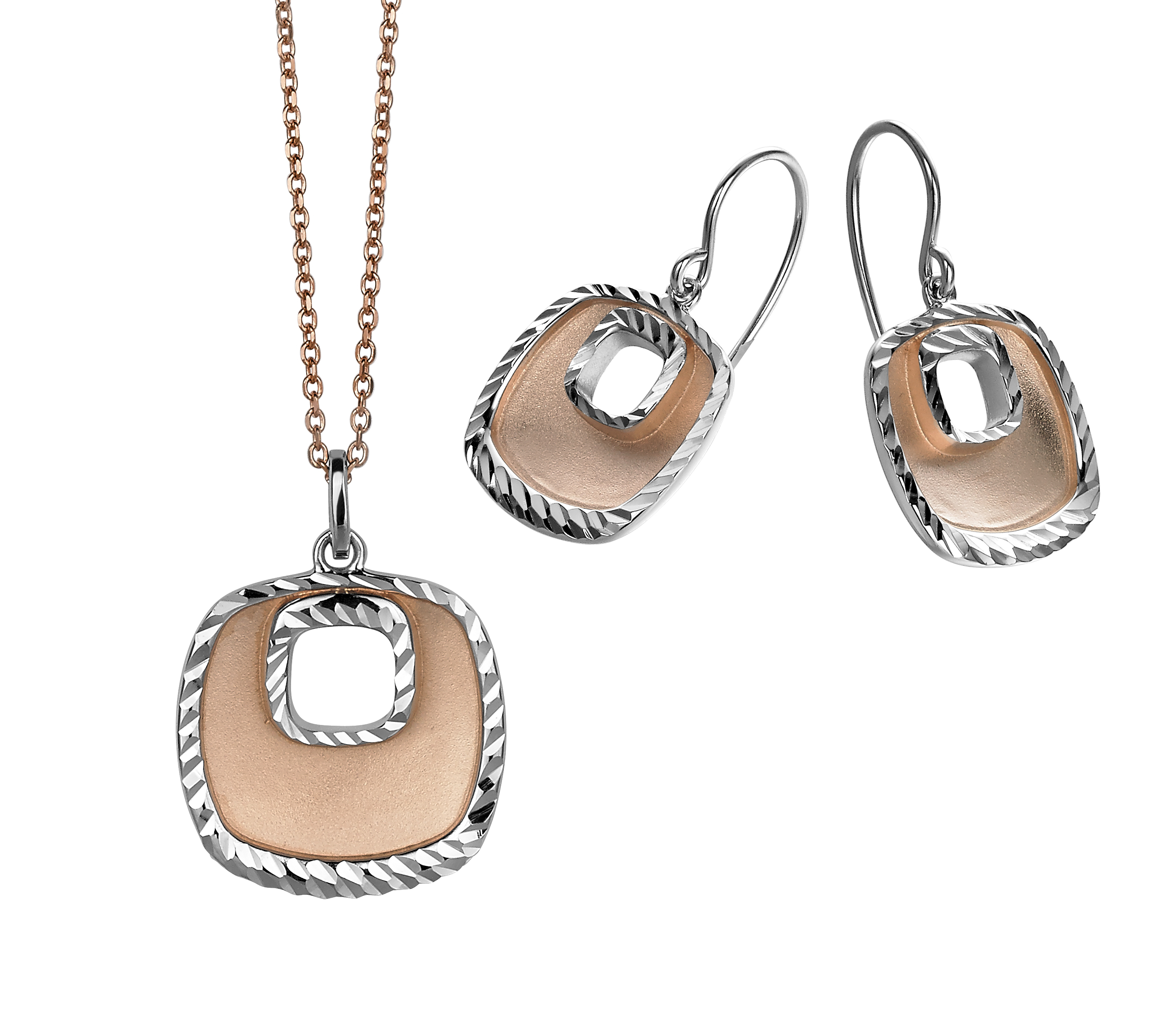 Orphelia Damen 925 Sterling Silber Set: Kettenanhänger + Ohrringe - Silber/Rosé SET-5188