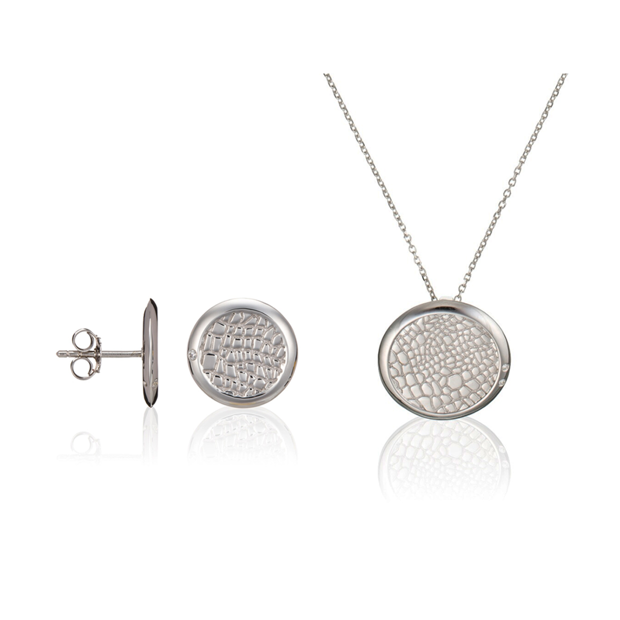 Elegantes rundes Kristall-Schmuckset in Silber – Ohrringe und Anhänger KP29899