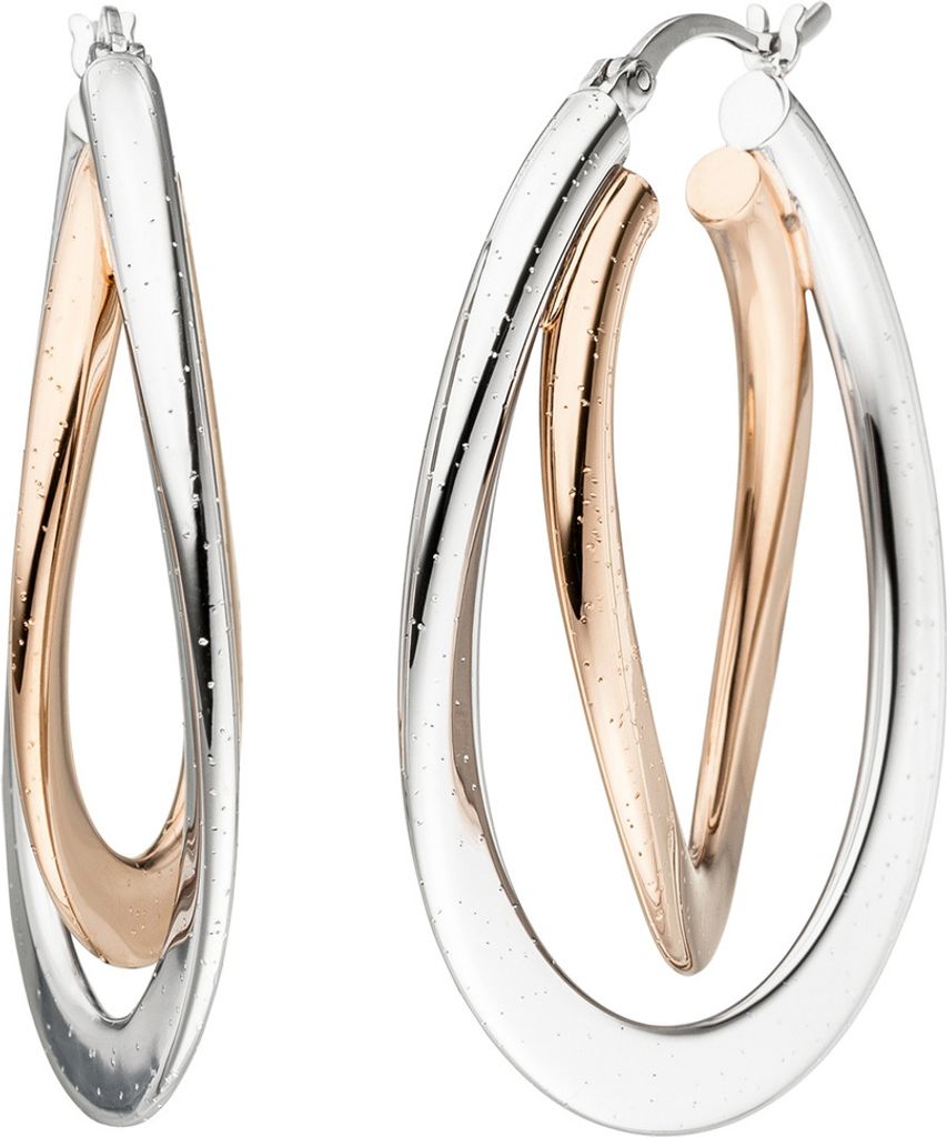 Creolen Ohrringe 2 ovale Tropfen gedreht 925 Silber Rotgold vergoldet bicolor