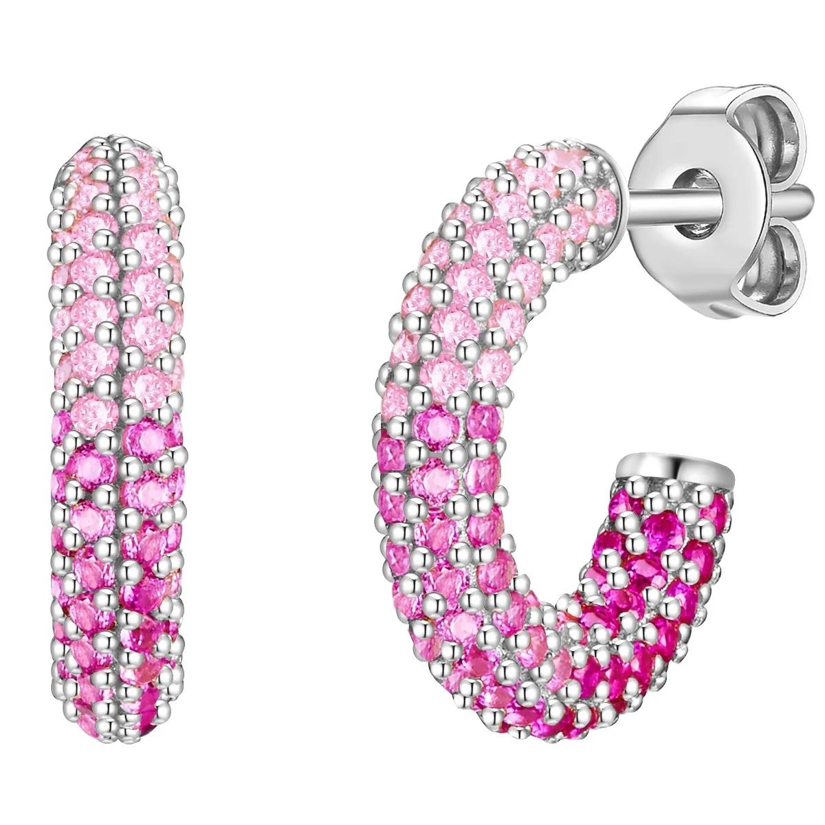 Paar Creolen Ohrringe 11x2mm Schmetterlinge rosa lackiert Zirkonia 925 Silber