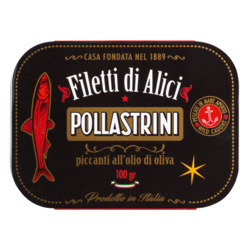 Sardellenfilets in Olivenöl mit Chili von Pollastrini, Filetti di Alici piccanti all'olio di oliva, 100 g