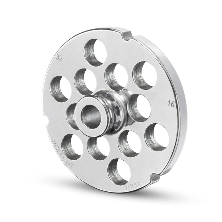 WOLFCUT Fleischwolfscheibe mit Nabe und 3 Nuten INOX-Stahl Größe 32 - 16,0 mm Bohrung kompatibel mit BIZERBA FW-N32 / ALEXANDERWERK 32 / OMEGA TH32