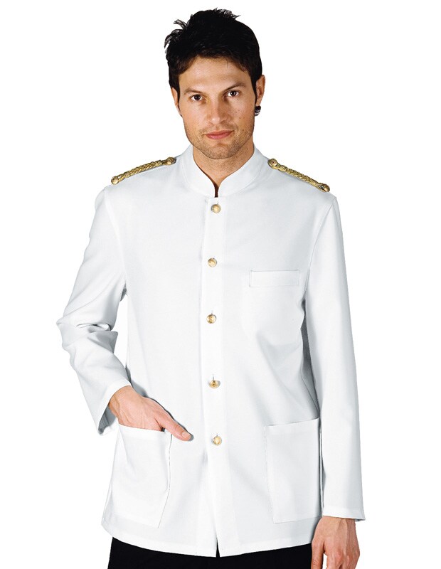 Isacco Coreana. Unissexo. Branco. Manga Comprida. com Galões-S