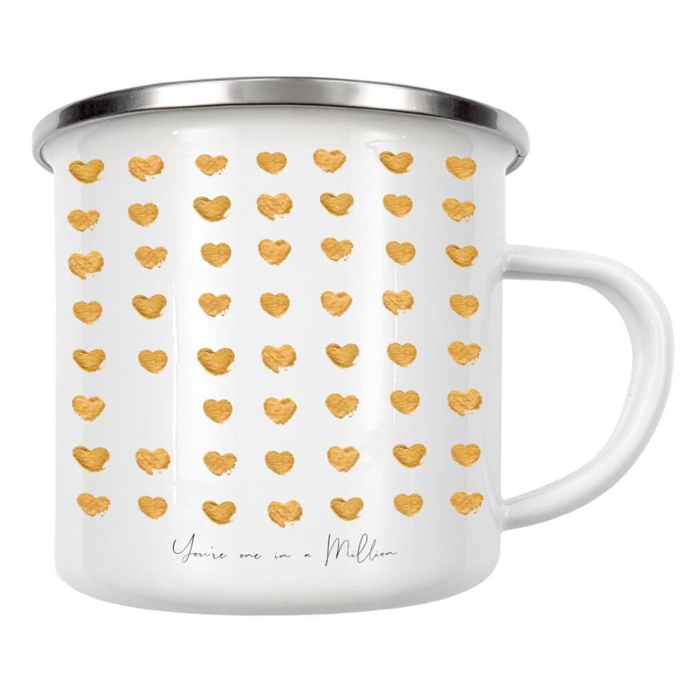Emaille Tasse "Gold hearts one in a million" artboxONE - Liebe,Für Mama,Für Papa