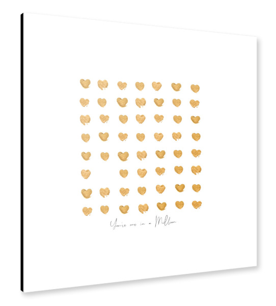Alu-Dibond "Gold hearts one in a million" 30x30 cm artboxONE