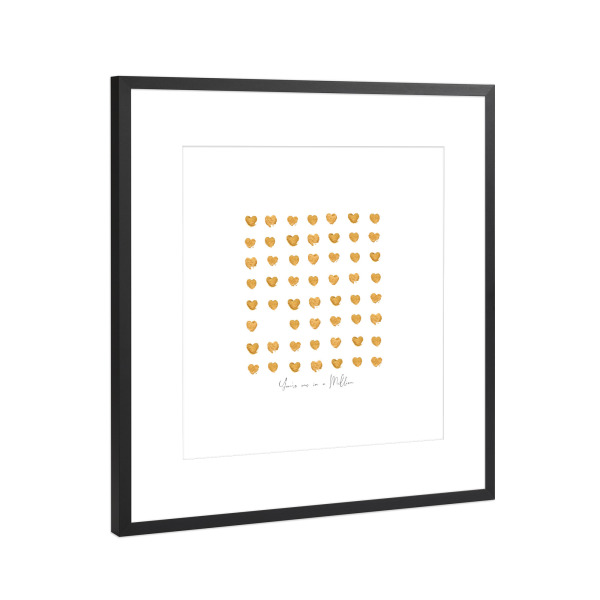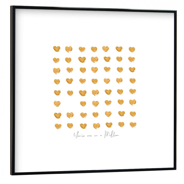 Poster mit schwarzem Rahmen 30x30 cm "Gold hearts one in a million" artboxONE - Liebe,Für Mama,Für Papa