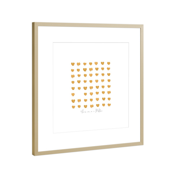 Poster mit Rahmen Gold "Gold hearts one in a million" artboxONE - Liebe,Für Mama,Für Papa