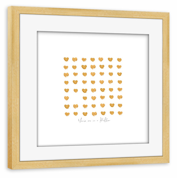 Poster mit Rahmen kiefer "Gold hearts one in a million" artboxONE - Liebe,Für Mama,Für Papa
