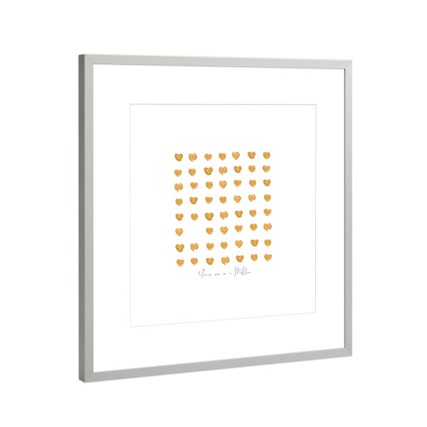 Poster mit Rahmen Silber "Gold hearts one in a million" artboxONE - Liebe,Für Mama,Für Papa
