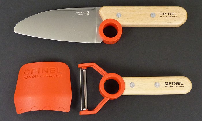 Opinel Kinder Küchenutensilien Set - Holzgriff - 3-teilig - Sicheres Kochlernen mit Chefmesser, Sparschäler & Fingerschutz