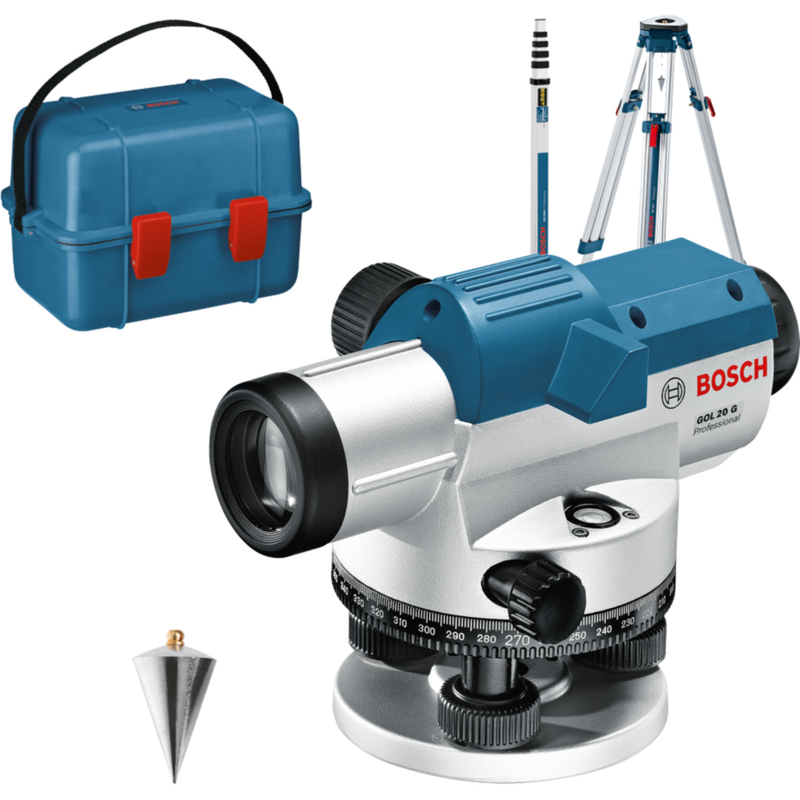 Bosch Optisches Nivelliergerät GOL 26 D mit Baustativ Messstab und Handwerkerkoffer Nr. 0601068002
