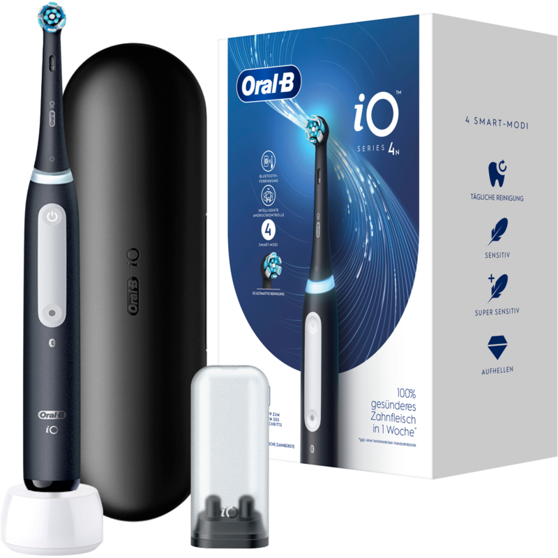 Oral-B | Elektrische Zahnbürste iO 4 - Matt Schwarz - Mit Etui und 4 Reinigungsaufsätzen - Intelligente Technologie