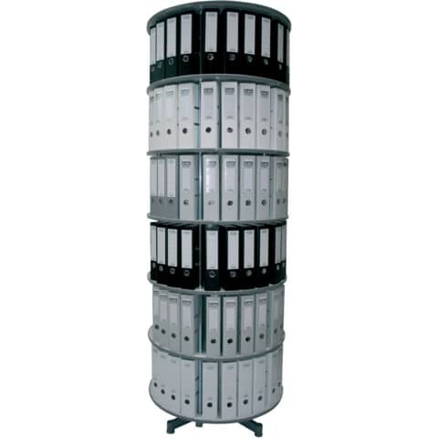 Ordner-Drehsäule mit 4 Etagen, für bis 80 breite DIN-Ordner, Böden hellgrau, Höhe 1560 mm, Ø 810 mm