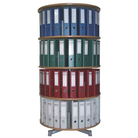Ordner-Drehsäule mit 4 Etagen, für bis 80 breite DIN-Ordner, Böden Buche-Nachbildung, Höhe 1560 mm, Ø 810 mm
