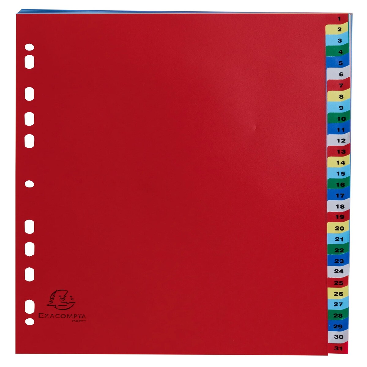 Exacompta 93E 20x Register für Ordner und Ringbücher, aus PP, 31 Positionen, Taben 1-31, für DIN A4 - Farben sortiert