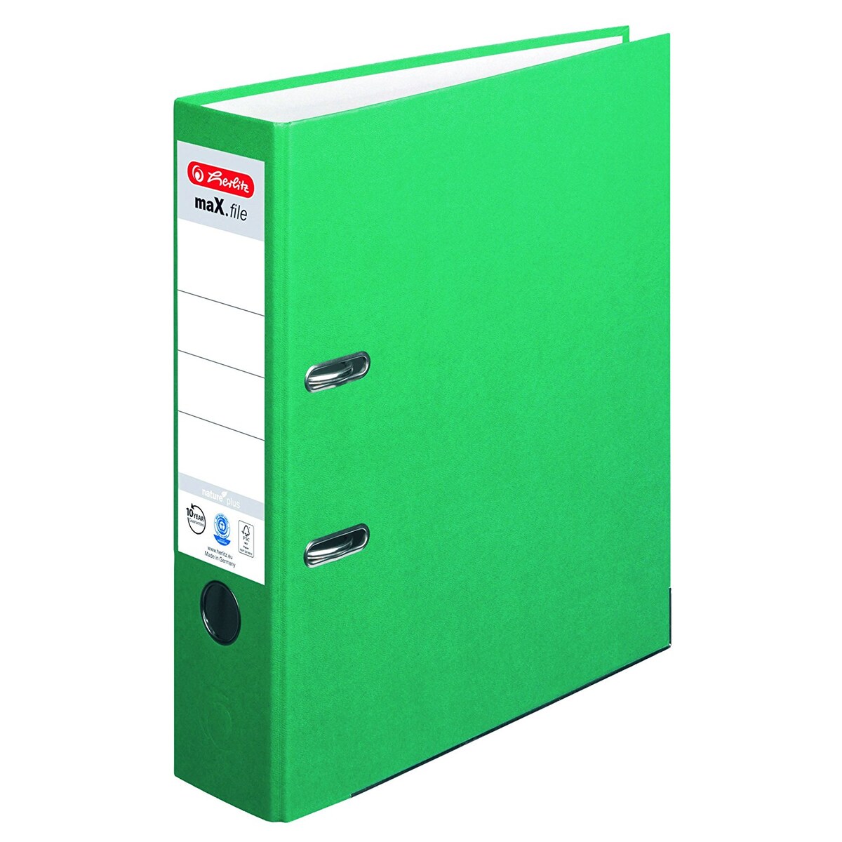 1x HERLITZ Ordner maX.file nature+ | Kraftpapierbezug selbstklebendes Rückenschild | 8cm | Grün