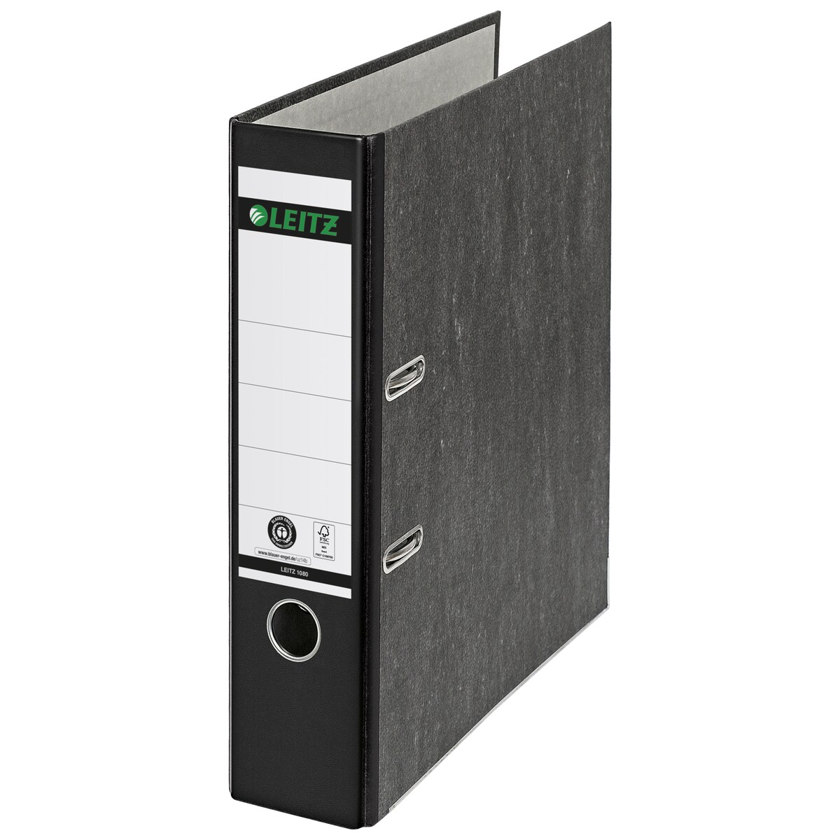 Leitz 180° Breit Ordner DIN A4 80 mm Schwarz 2 Ringe 1070 Pappkarton Wolkenmarmor Hochformat Recycled