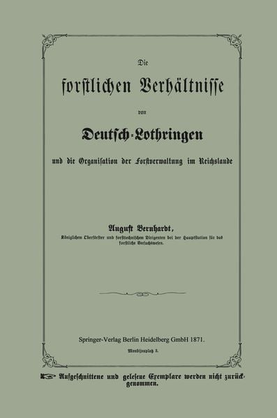 Die forstlichen Verhältnisse von Deutsch-Lothringen und die Organisation der Forstverwaltung im Reichslande, Taschenbuch von August Bernhardt,