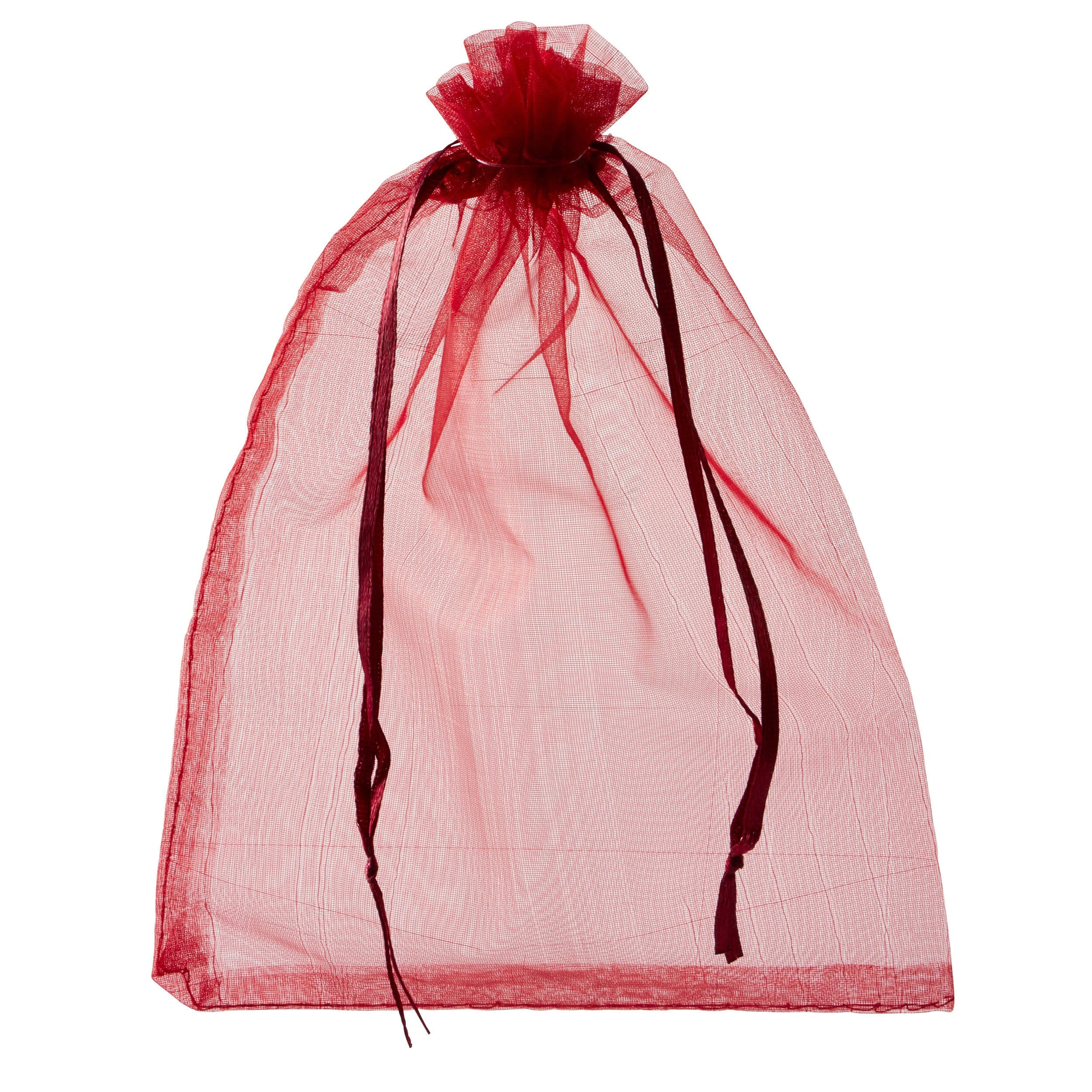 50 Organzasäckchen mit Satinband Verschluss dunkelrot | 150 x 200 mm
