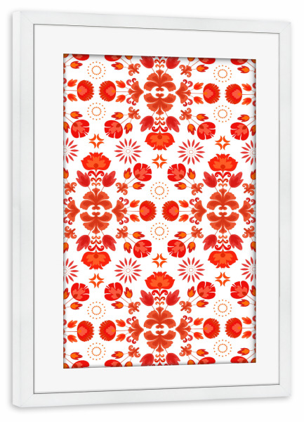 Poster mit Rahmen weiß "Fiesta Folk Red" artboxONE - Floral - Ornament,Traditional,Flowers