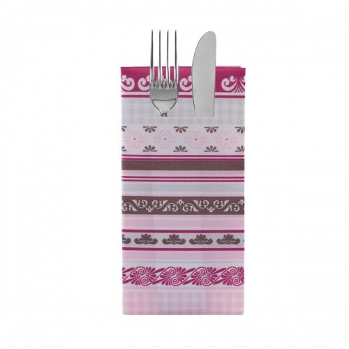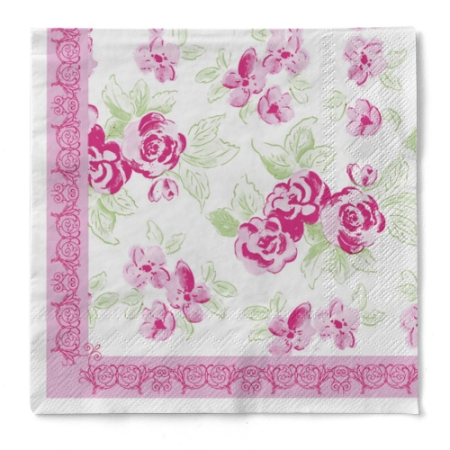 Sovie HOME Serviette Country Line in Rosa-Grün aus Tissue 33 x 33 cm, 20 Stück - Streifen Ornamente Rosen