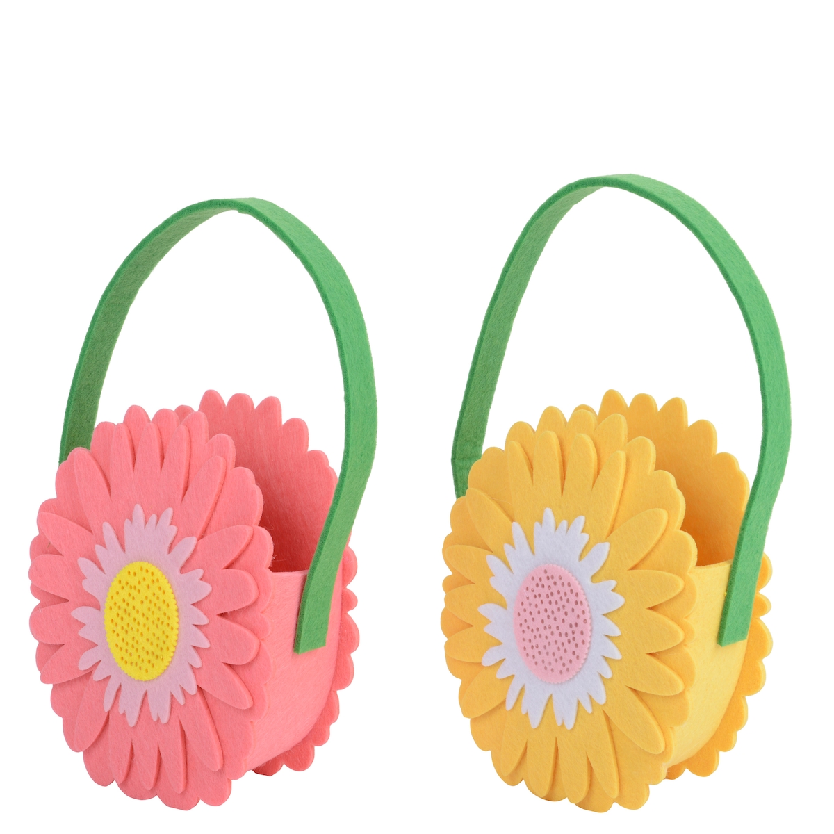 HAAC 2er Set Deko Filzkorb Ostern Osterkorb Osternest m Henkel Blumen 23 cm 14cm